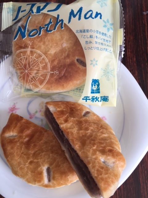 千秋庵のノースマン。最近では「あっ、懐かしい」とう感じのお菓子となってしまいましたが、食べるとやっぱりおいしい。パイはちょっとかたさがあり、中のあんこは絶妙の甘さなのです。時代が流れていますからどんどんと新しいお菓子がでてきますが、子供の頃からの決して忘れたくない私の中の銘菓です。
