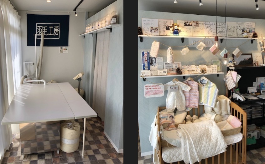 ①店内の羽毛布団製造機で羽毛布団を手作りしております